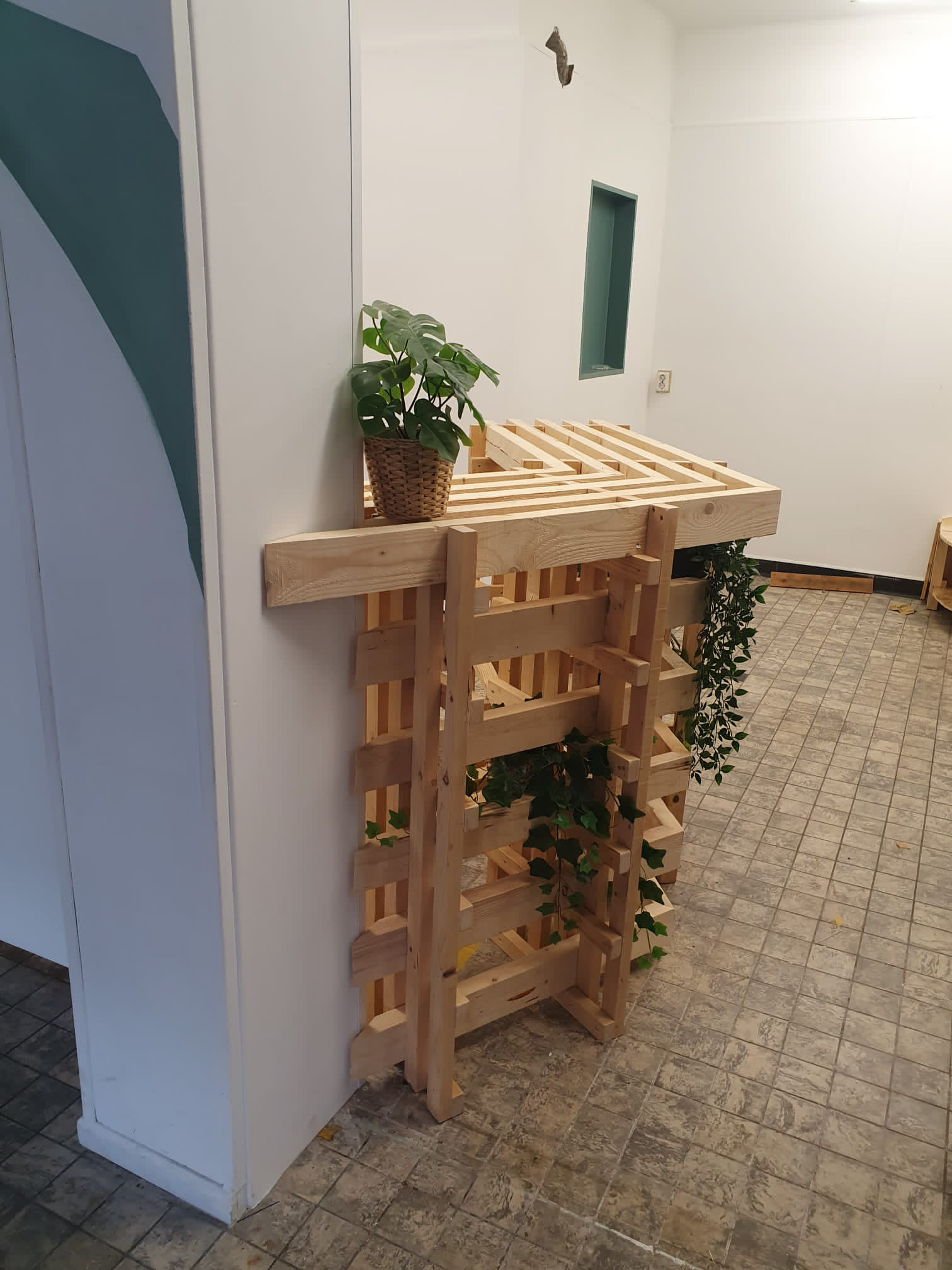 bar is made during a two week seminar in the Hague, where design students came together to make products for a village hall. where people come together to cook, eat and get to know each other. all the products are made of rest wood that we collected. I made this bar together with two other students.