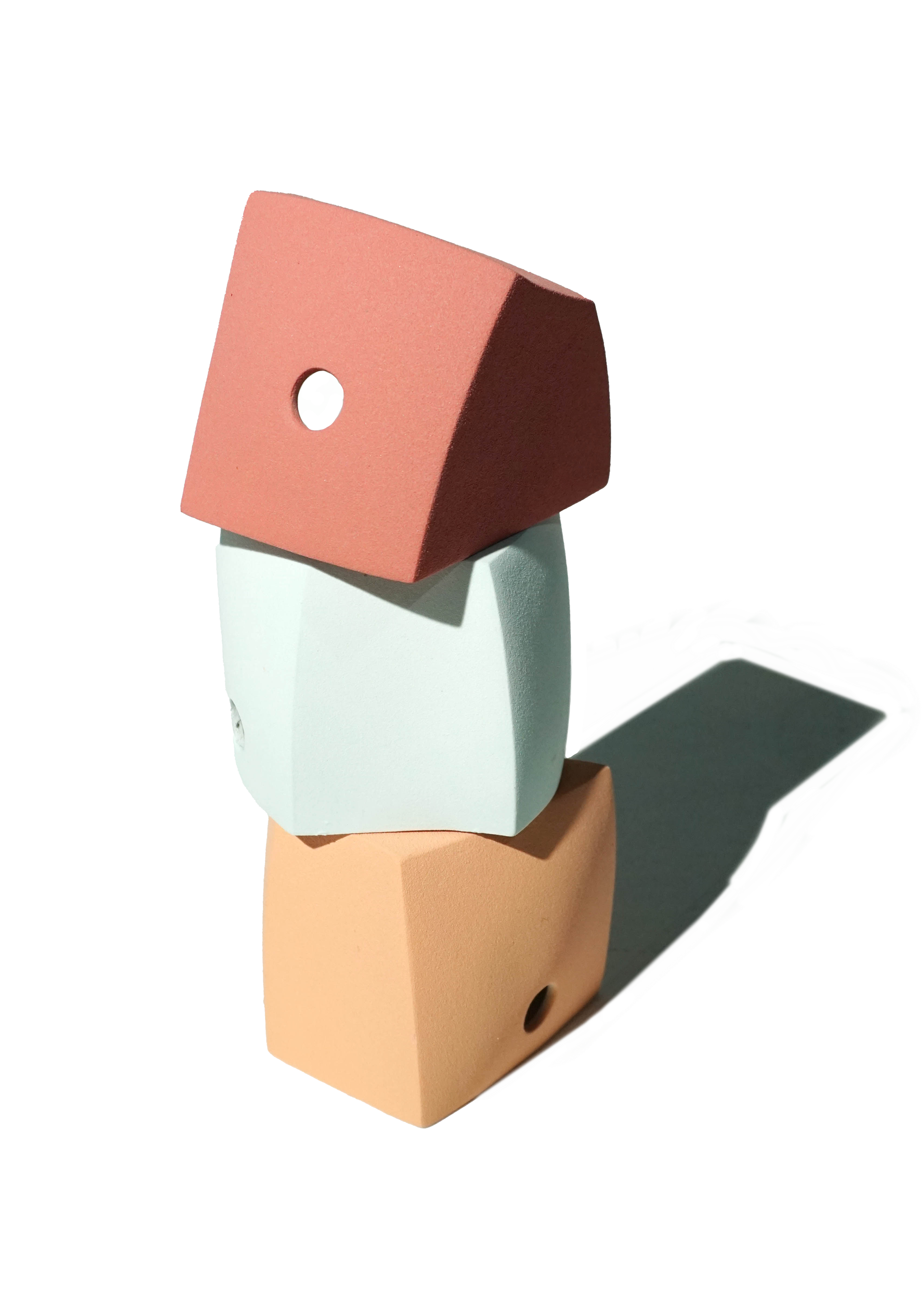Forms in Exploration originated from my play method: creating, connecting, and stacking shapes. Through a repetitive and intuitive process, a unique formal language developed, and a deep investigation into correctness of form, composition, and balance grew.