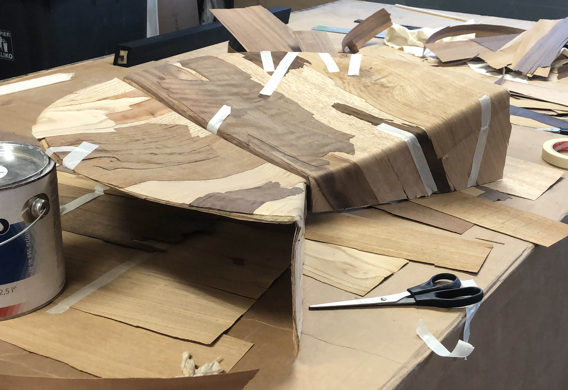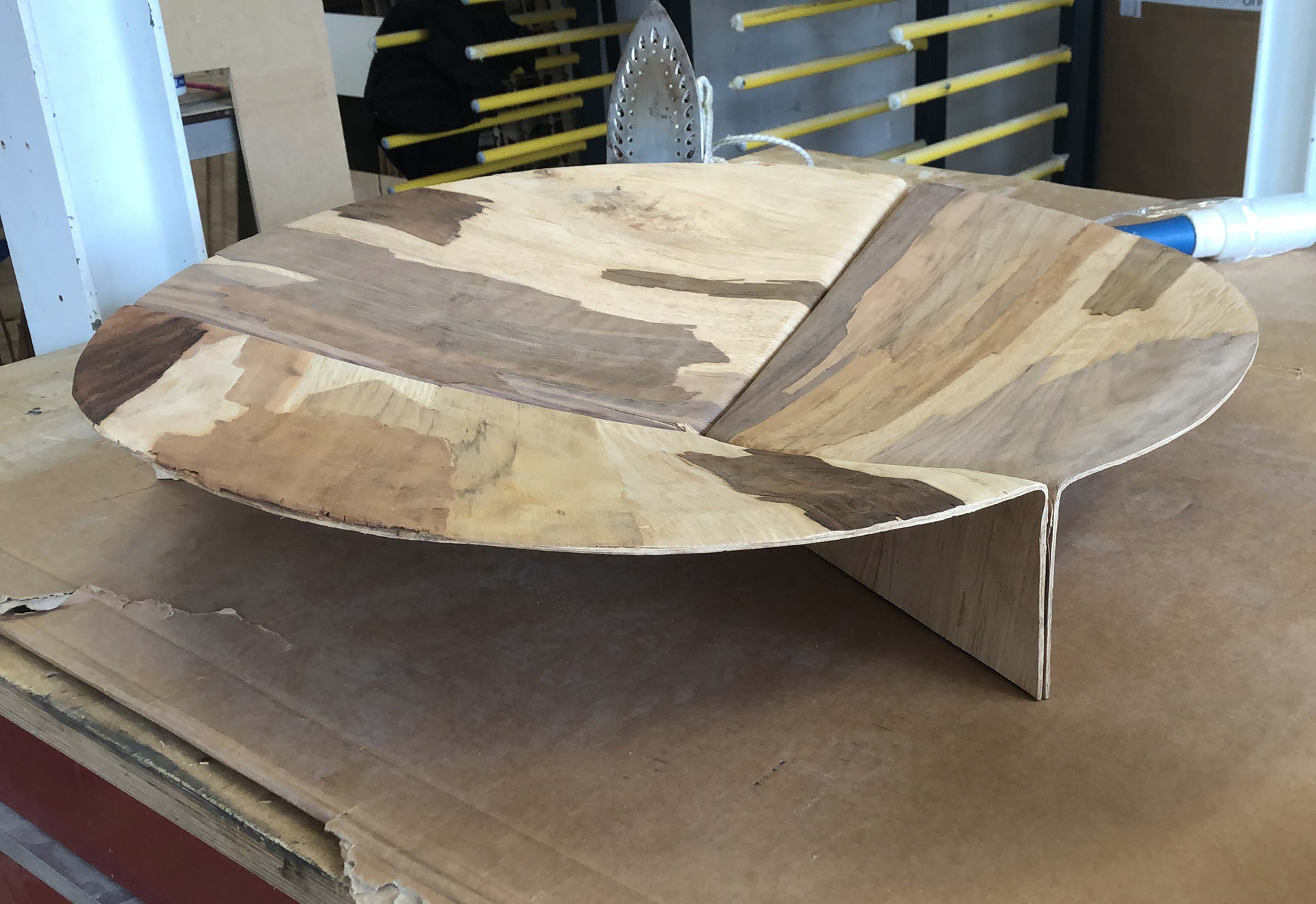 Fineer schaal is gemaakt tijdens mijn stage bij studio Jeroen Wand. Hier kreeg ik de opdracht om een interieur product te maken van resten van resten fineer. Deze schaal is gemaakt door te fineren over een mal heen en in vorm gebracht en gehouden door gebruik van een vacuum tafel.